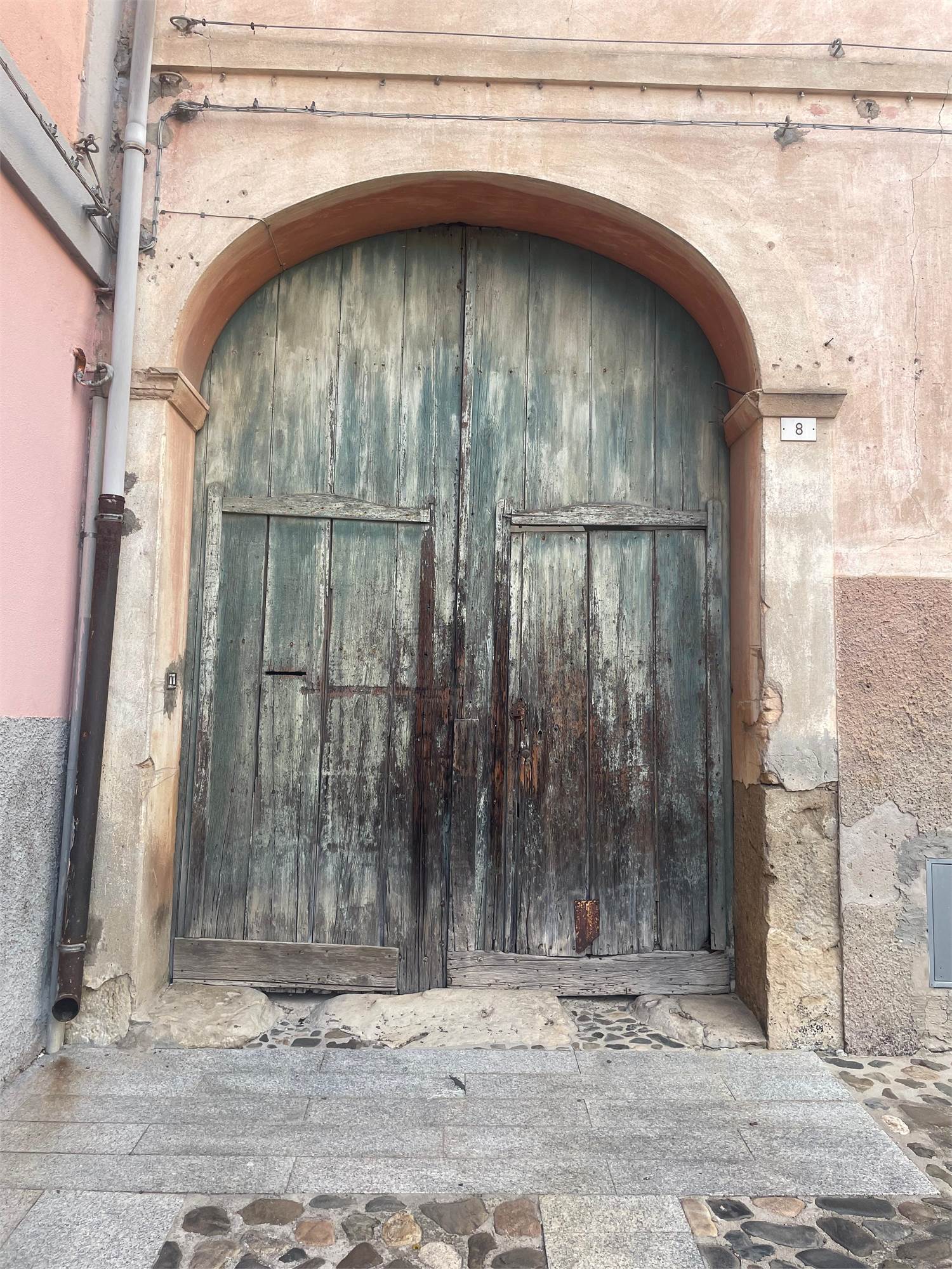 La struttura della casa campidanese presenta un classico portale d’ingresso ad arco in legno, carrabile, che si apre sugli alti muri perimetrali e che permette di accedere al cortile interno e alle altre stanze della casa.