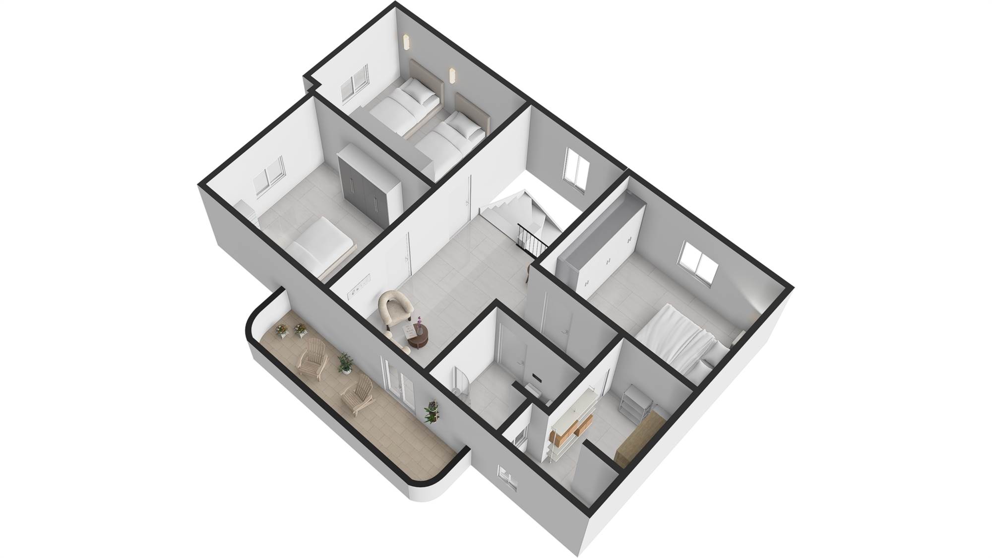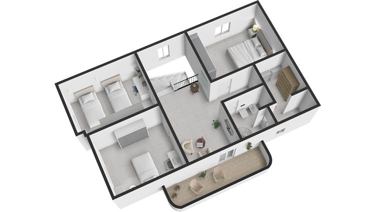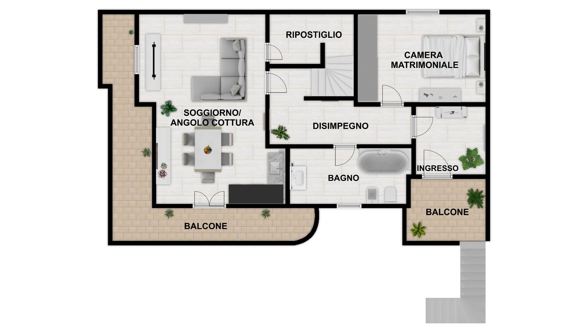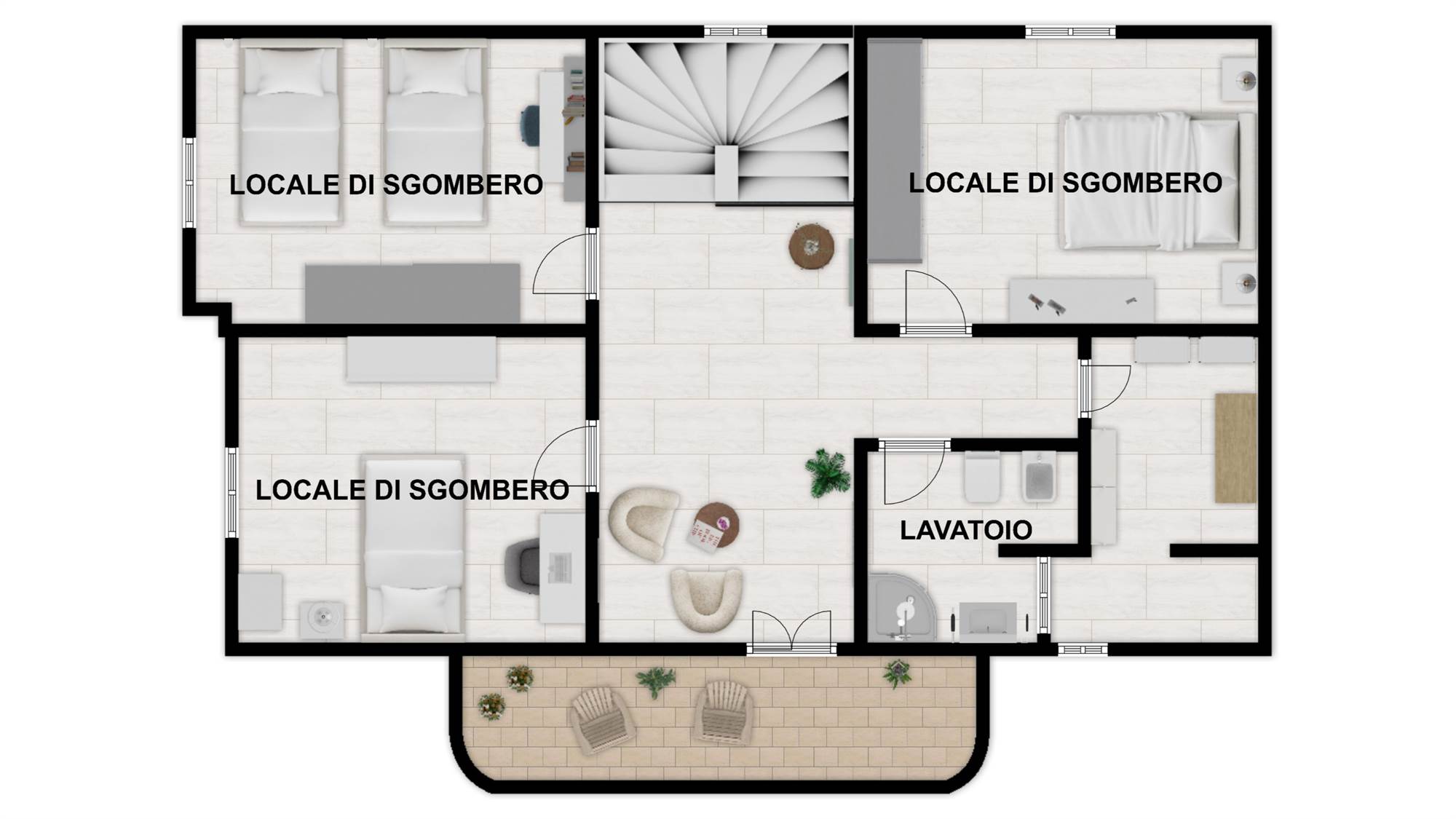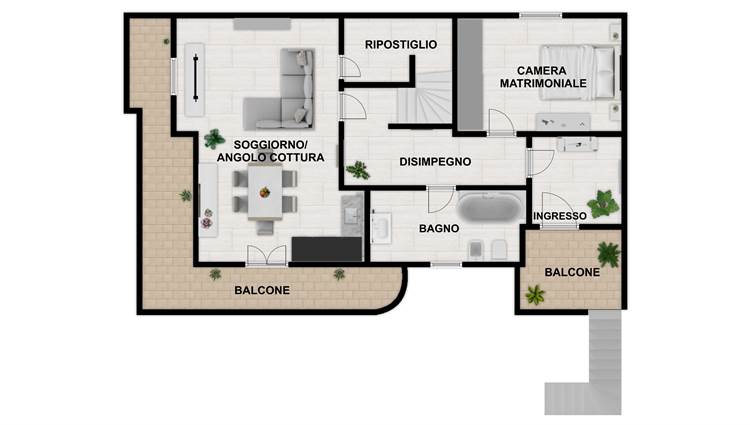 Si tratta di una soluzione abitativa di tipologia trivano, caratterizzata da una distribuzione degli spazi funzionale e ben organizzata, pensata per garantire comfort e praticità nella vita quotidiana.