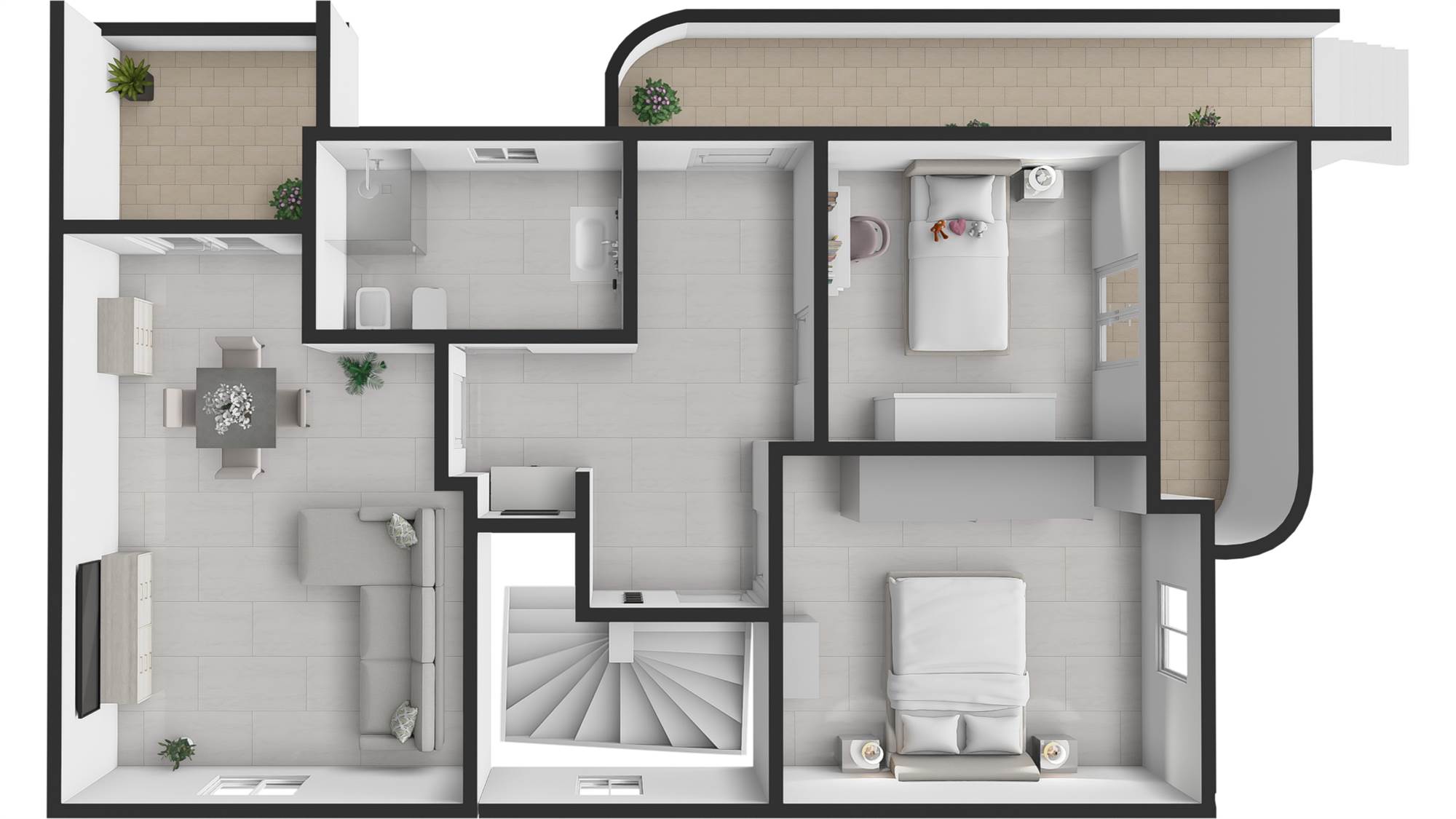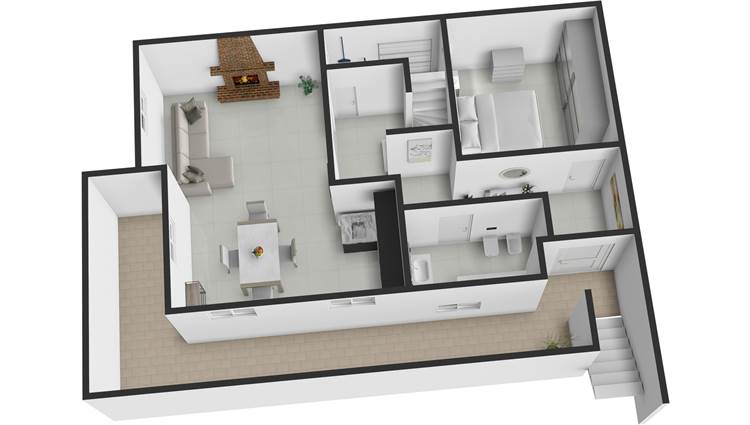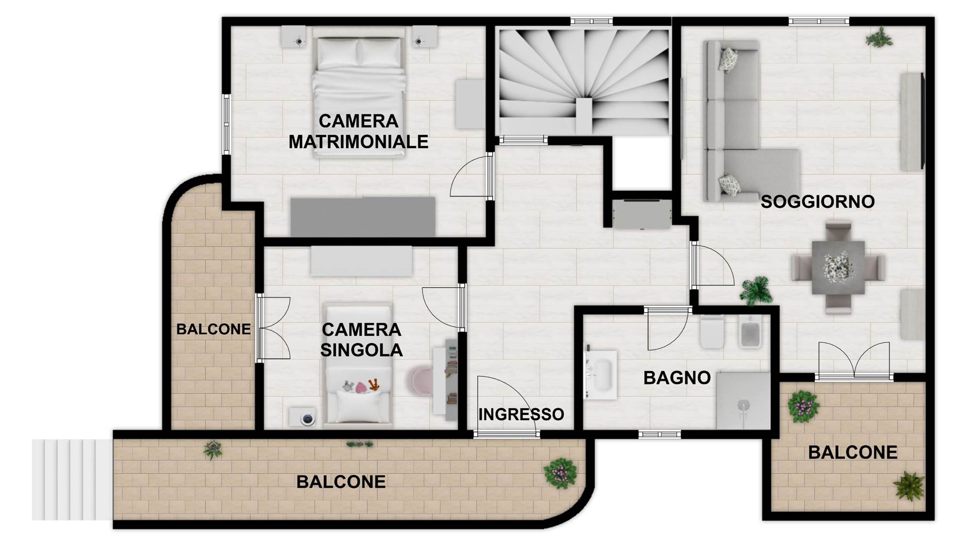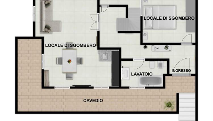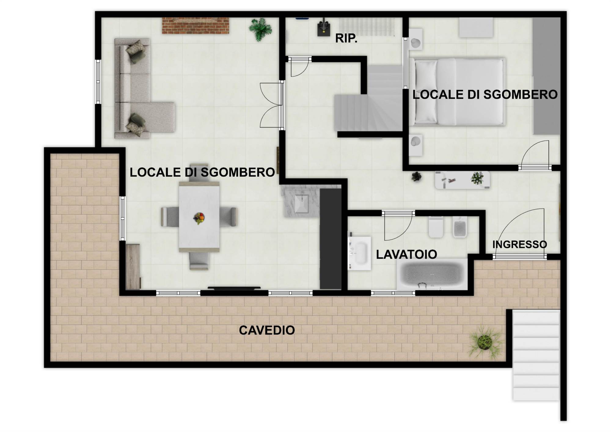 L’immobile, di tipologia quadrivano, è composto da un accogliente soggiorno con angolo cottura, due camere da letto e un bagno. Al piano seminterrato si trova un ampio locale di sgombero, collegato e dotato di cavedio, ideale come deposito, area hobby o spazio accessorio. Nello stesso livello è presente una zona rustica e un’ulteriore camera, rendendo la soluzione particolarmente versatile e funzionale.