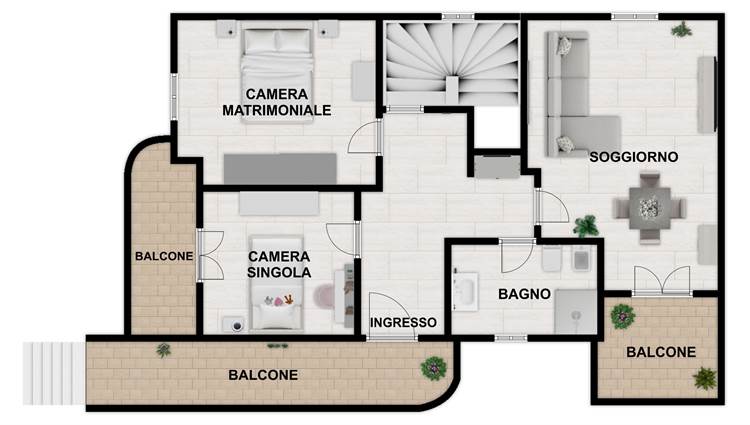 La proprietà è completata da tre balconi che garantiscono una buona luminosità agli ambienti.