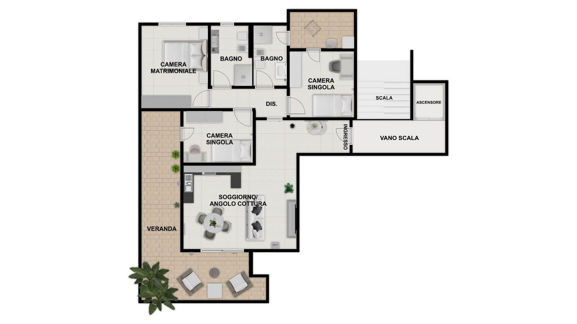 • Spaziosa veranda coperta, vero punto di forza della zona giorno