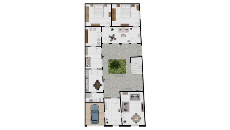 La casa si sviluppa su oltre 150 m² distribuiti su un unico livello, con ampie stanze, altezze generose e un’impostazione tradizionale che ben si presta sia ad una ristrutturazione conservativa che ad un progetto moderno, mantenendo però il fascino dell’architettura campidanese originale.