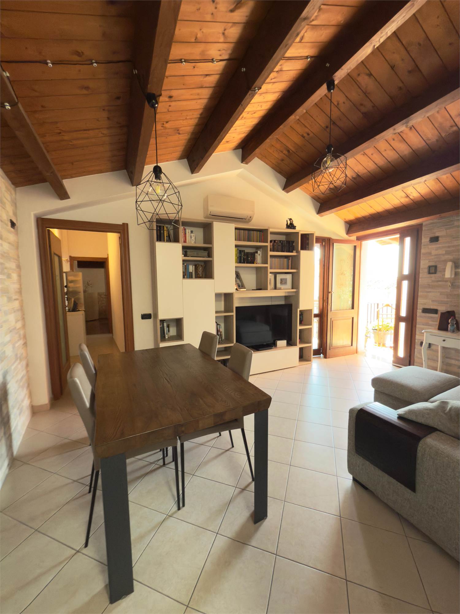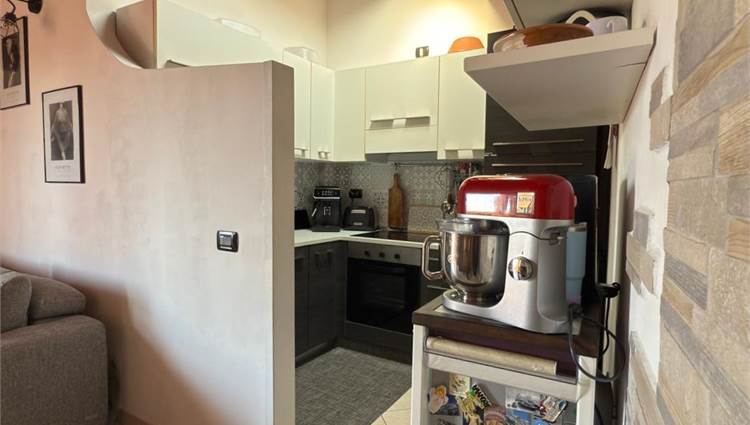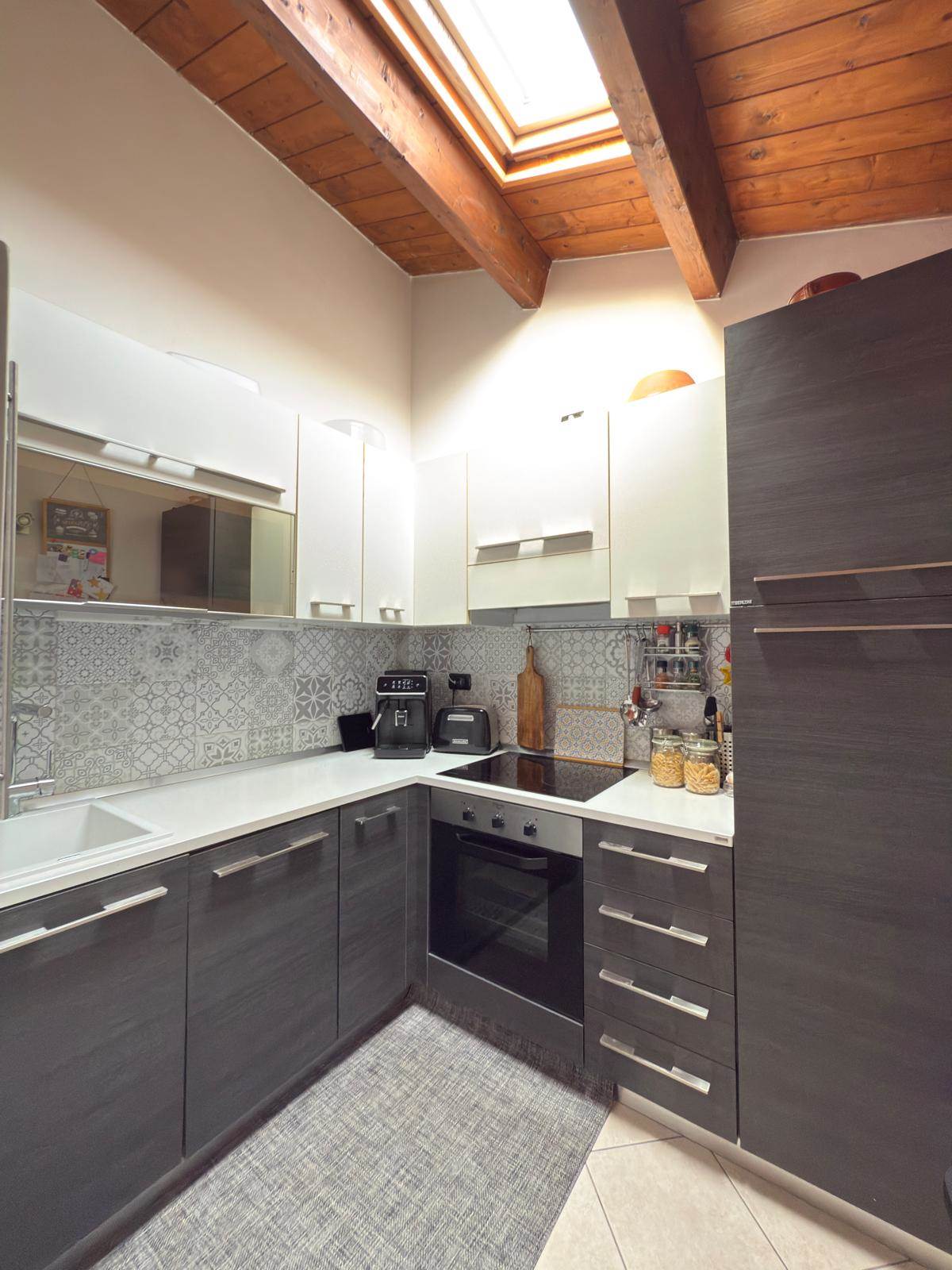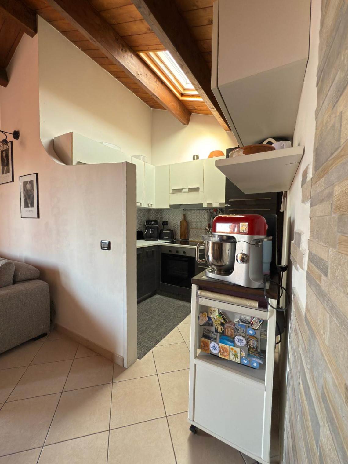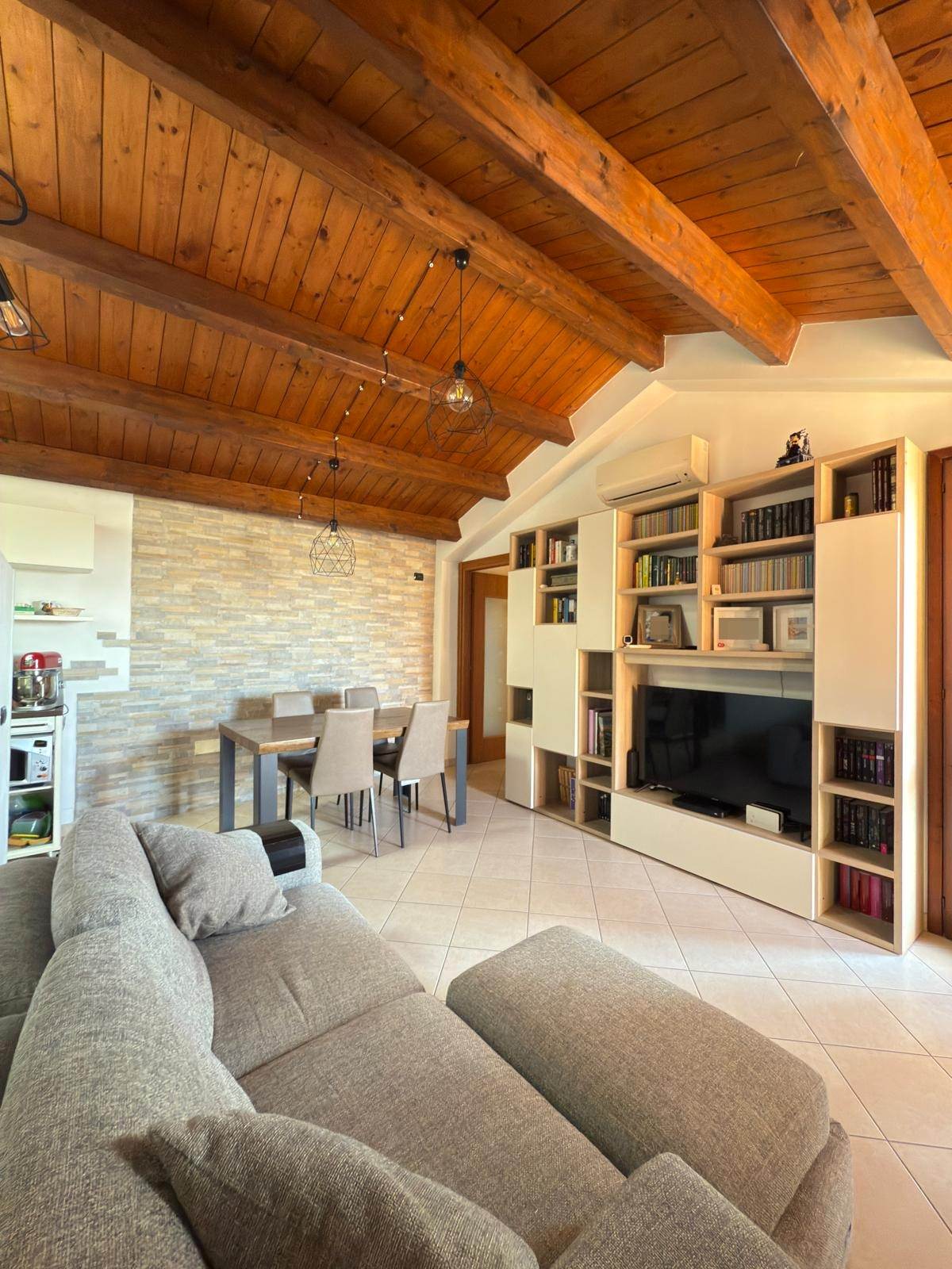 L’appartamento si distingue per il suo stile caldo e accogliente, grazie alle travi in legno a vista e alle ottime finiture.