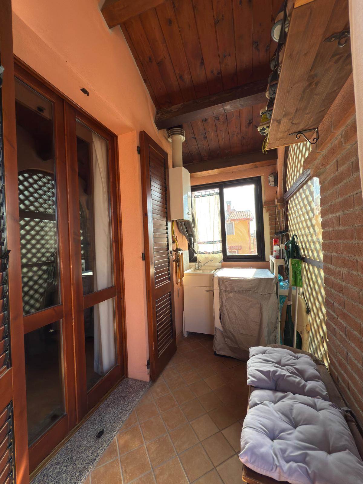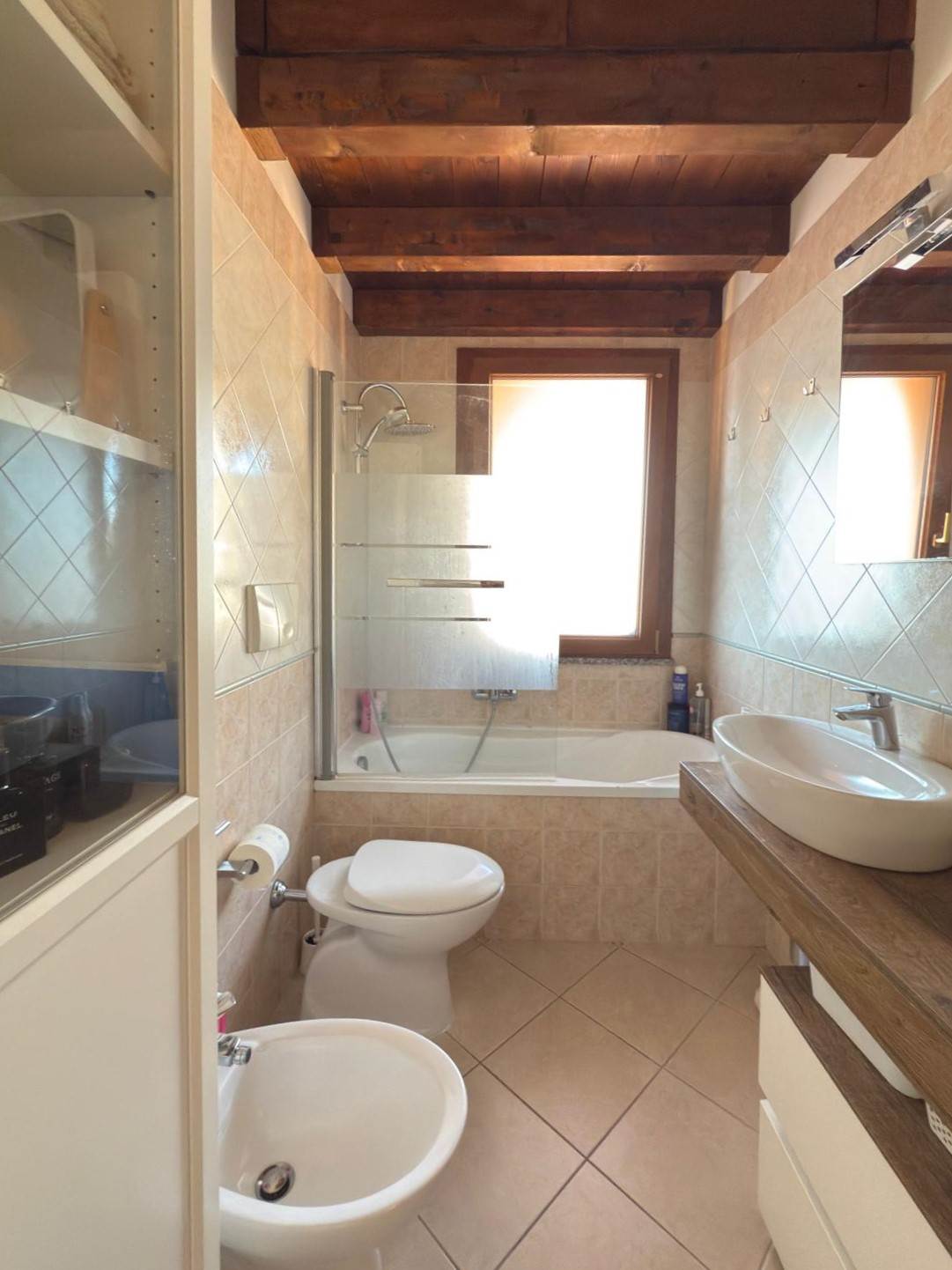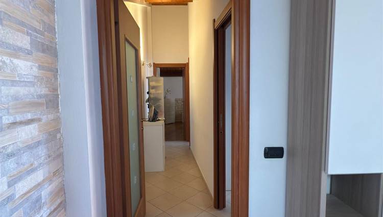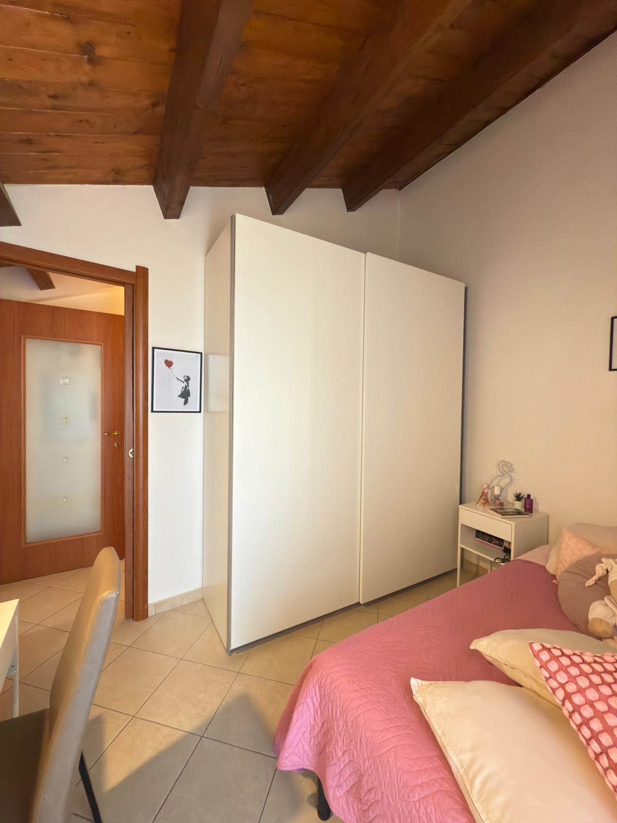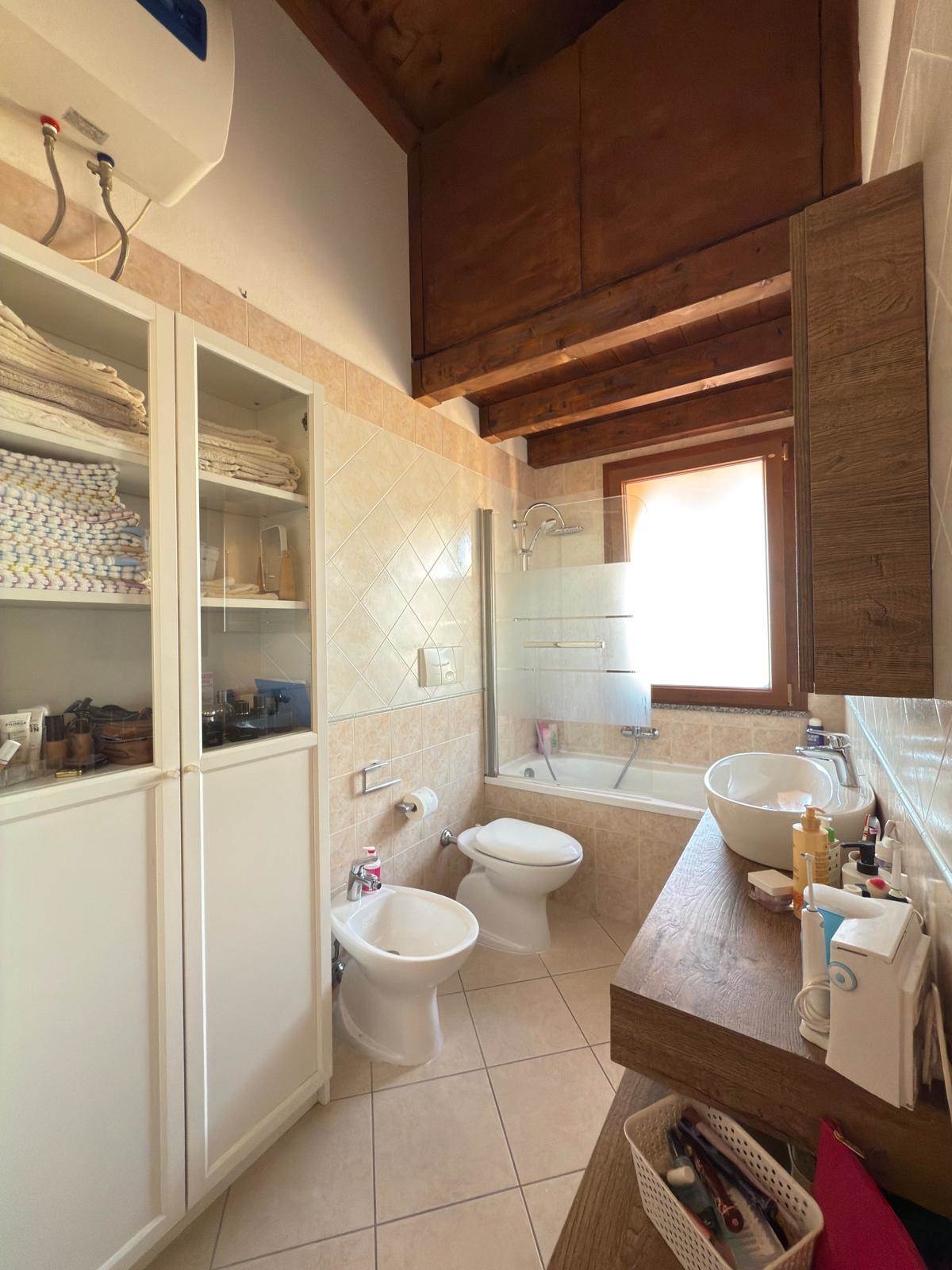 L’appartamento si distingue per il suo stile caldo e accogliente, grazie alle travi in legno a vista e alle ottime finiture.