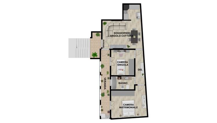All’esterno, un posto auto dedicato completa una soluzione abitativa comoda sotto ogni aspetto.